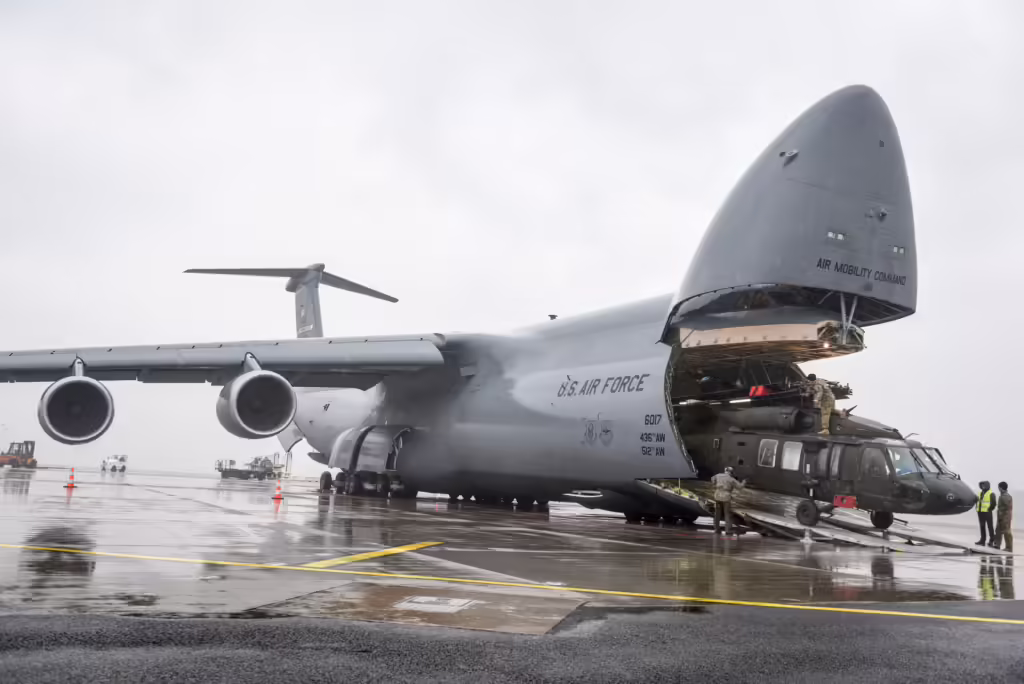 El C-17A, que entró en servicio por primera vez en 1995, alcanza una velocidad máxima de aproximadamente 835 kilómetros por hora y una capacidad de carga útil de unas 82 toneladas, según datos de la Fuerza Aérea. Los C-5M, mucho más grandes, que comenzaron su carrera en la década de 1980 como C-5B y C, pueden transportar hasta 135 toneladas de carga y/o personal a aproximadamente la misma velocidad. Ambos tipos suelen alcanzar velocidades de crucero más bajas. También pueden reabastecerse de combustible en vuelo para ampliar su alcance. Ni el C-17 ni el C-5 se encuentran actualmente en producción.